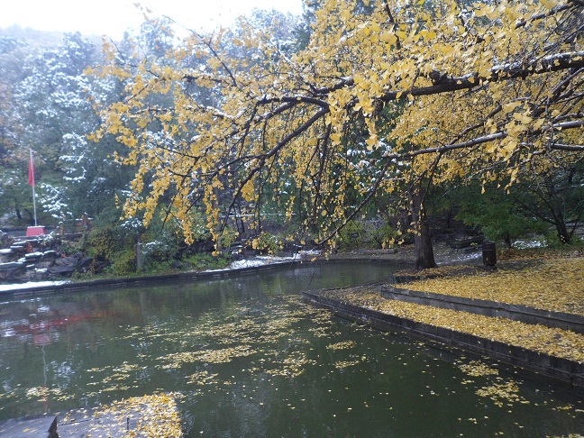 香山公園位于北京西北郊小西山山脈東麓,距城20公里,占地160公頃,是一座著名的具有皇家園林特色的大型山林公園。到達香山是午后,雪已經開始變小,我們順著香山左側而上。一路上,青松高大挺拔,古樹委婉嫵媚,銀杏燦爛鋪地,紅葉時而飄落,寺院臺閣矗立,都說香山楓葉紅似火,實則登上望廬峰,俯身一望,天山一色,雪霧彌漫,也是相當的壯觀。