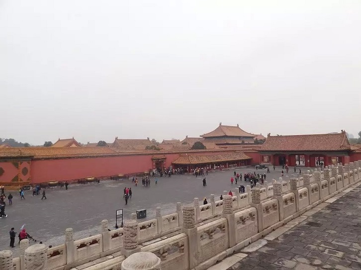 第三天的行程開始的比較早。為了占據觀看升旗的最佳位置,我們一行相約5點出發。觀看莊嚴的升旗儀式后,便馬不停蹄的趕去毛澤東紀念堂排隊,瞻仰中國人民的偉大領袖毛主席。隨后便穿過金水橋,從午門進入宏偉壯麗的紫禁城。故宮宮殿是沿著一條南北向中軸線排列,三大殿、后三宮、御花園都位于這條中軸線上,并向兩旁展開,南北取直,左右對稱,東西六宮都自成一體,各有宮門宮墻,相對排列,秩序井然。走進紫禁城,立馬被氣魄宏偉,規劃嚴整,雄渾壯觀的宮殿與廣場所驚嘆。其中太和殿坐落在紫禁城對角線的中心,四角上各有十只吉祥瑞獸,生動形象,栩栩如生,象征封建政權至高無上。御花園里有歲寒不凋的蒼松翠柏,有秀石迭砌的玲瓏假山,樓、閣、、榭掩映其間,幽美而恬靜。走進這座宮城,手撫著漢白玉,仰望著宮殿,一磚一瓦,一石一木都似乎在訴說著這座宮城的故事,那早已遠去的皇家遺韻。