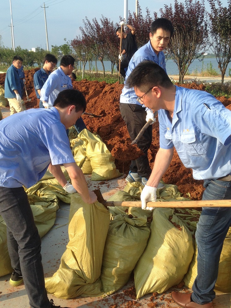 7月21日16:30到22日凌晨2:30,30人隊(duì)伍連續(xù)10小時(shí)奮戰(zhàn),從頭頂烈日到披星戴月,裝填2000個(gè)沙土袋,碼起100米防洪堤,是連夜一次性完成指定任務(wù)的唯一企業(yè)隊(duì)伍。8月10日14:30到17:30,20人隊(duì)伍連續(xù)3小時(shí)奮戰(zhàn),頭頂烈日汗流浹背,裝填600個(gè)沙石袋,如期完成指定任務(wù)。