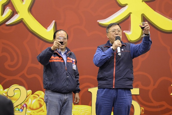 餐會以副執(zhí)行長兼總經(jīng)理張振崑先生介紹蒞臨現(xiàn)場的集團(tuán)長官、政府領(lǐng)導(dǎo)以及協(xié)力廠商代表等貴賓拉開序幕。接著,吳執(zhí)行長宣布亞泥(中國)及江西亞東同仁2014年可喜獲3.127個月全薪的年終獎金,并提出2015年是本公司依照集團(tuán)董事長要求,貫徹“改變”思維的紀(jì)元年,號召同仁轉(zhuǎn)化觀念,求新求變,為早日實現(xiàn)“超臺泥、趕海螺”的愿景而奮發(fā)進(jìn)取。