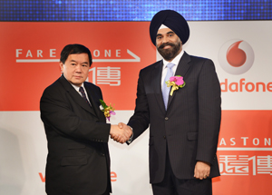 遠(yuǎn)傳電信于5月2日與國際電信巨擘Vodafone共同宣布結(jié)盟合作,由遠(yuǎn)東集團(tuán)徐旭東董事長與Vodafone全球合作市場執(zhí)行長Mr. Ravinder Takkar代表出席。透過本次結(jié)盟,遠(yuǎn)傳成為Vodafone在臺唯一簽約合作伙伴,可以提供廣大遠(yuǎn)傳用戶更優(yōu)惠的通訊費率及更優(yōu)質(zhì)的通話質(zhì)量。未來也將積極整合國際聯(lián)盟伙伴現(xiàn)有資源,進(jìn)行云端運算技術(shù)交流,延伸并縝密國際企業(yè)服務(wù)網(wǎng)絡(luò)。